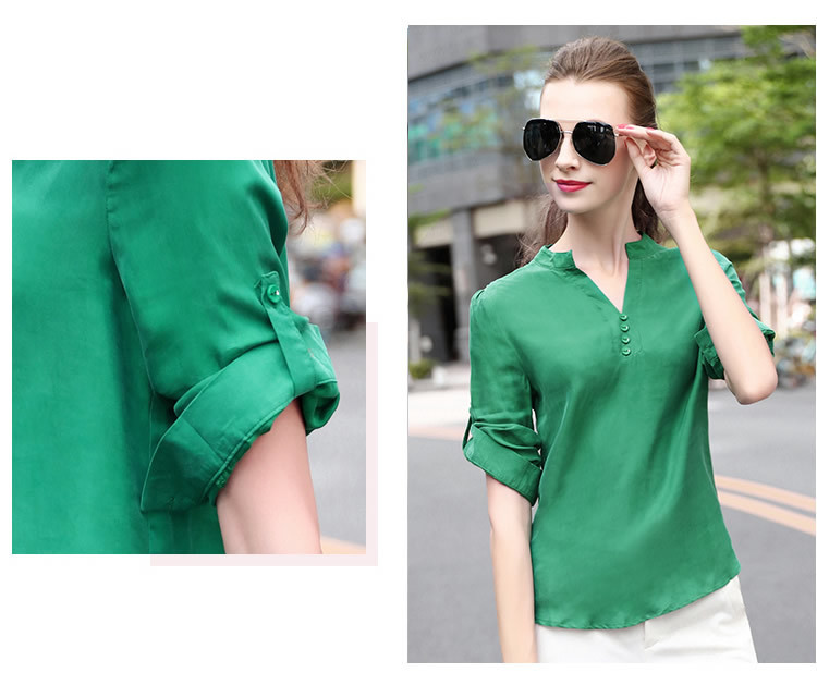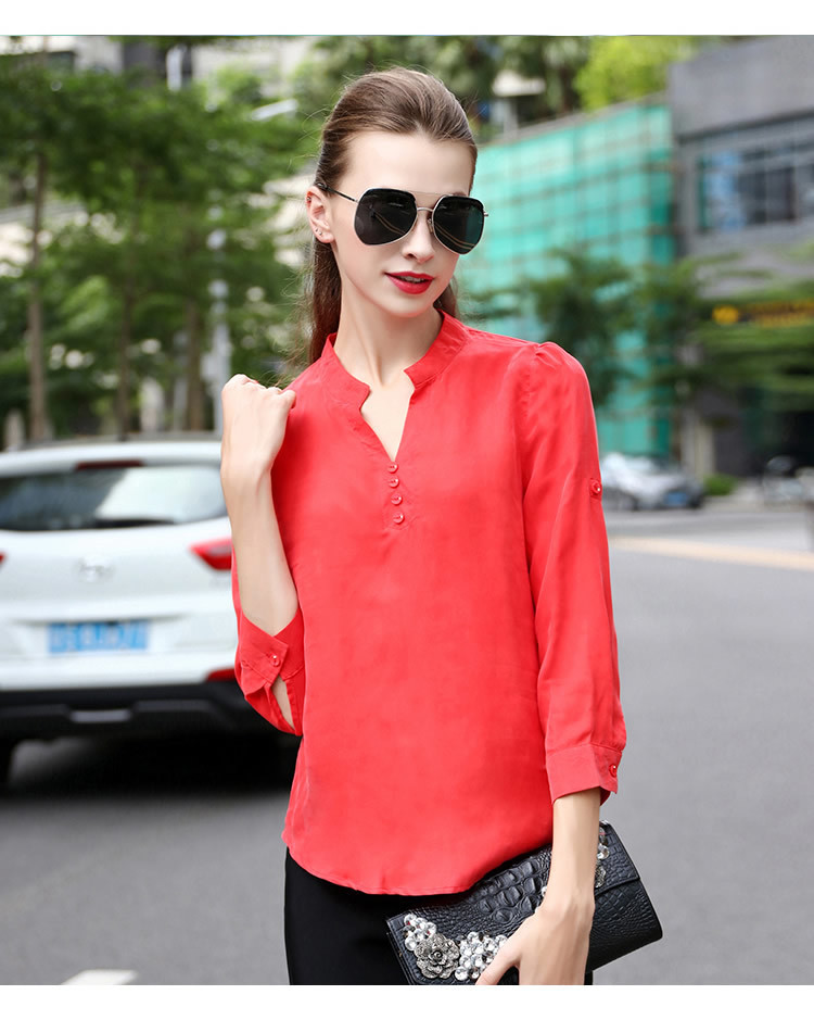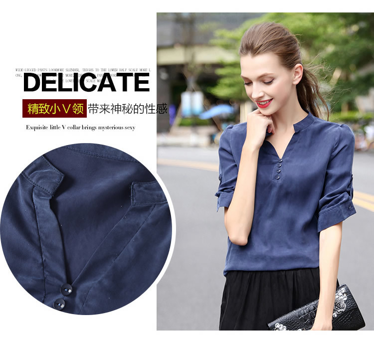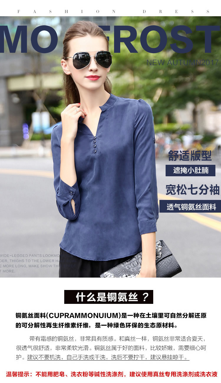 Copper Ammonia Silk Top Heavy Female Silkworm Shirt Female Seven-Point Sleeve V-Neck Summer New Loose Large Size Silk T-Shirt